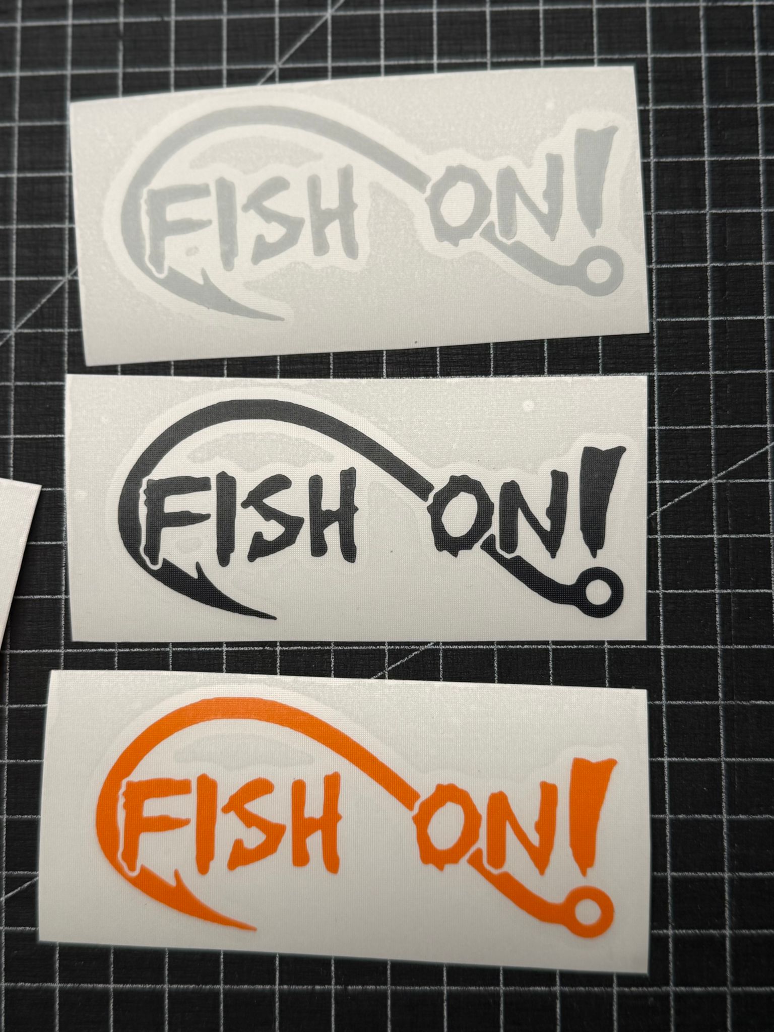 Ich biete euch diverse farbige Aufkleber / Sticker ohne Hintergrund / freistehend mit dem "Fish On #1" Motiv in verschiedenen Größen.